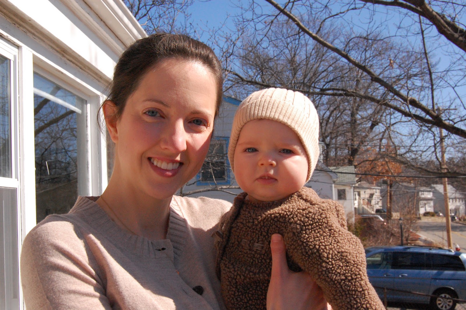 Yesterday was your 7-month birthday, and you seem to have changed over night into a big girl. Today I put you in a high chair for the first time, and you beamed at me through the whole meal. It was like you were proud and understood what a big milestone it was! You are really starting to be fun to play with because you can sit up, make facial expressions and sounds, and laugh. I can entertain you with simple games of pat-a-cake and peek-a-boo. The squishy books and rattles are also popular toys, and of course everything goes right in your mouth. We walked to the park a few days ago with you in the backpack for the first time, and you loved being up so high. You flapped your arms and squealed the whole way there. I know the time of you being a cuddly infant is soon going to end, so I am eating up every moment. I love that when I pick you up, you hug me and give me a big open-mouth kiss.Vivi is waiting impatiently for you to be big enough to play with her–little does she know what that will actually mean for all of “her” toys. When Vivi was 7 months old she had experienced an entire summer, but you have been bundled up nearly your whole life up to now. Spring is finally coming, so I look forward to showing you real animals and flowers. I know you will love going in the pool this summer because you love to splash in the bath. How splendid life is for a baby!