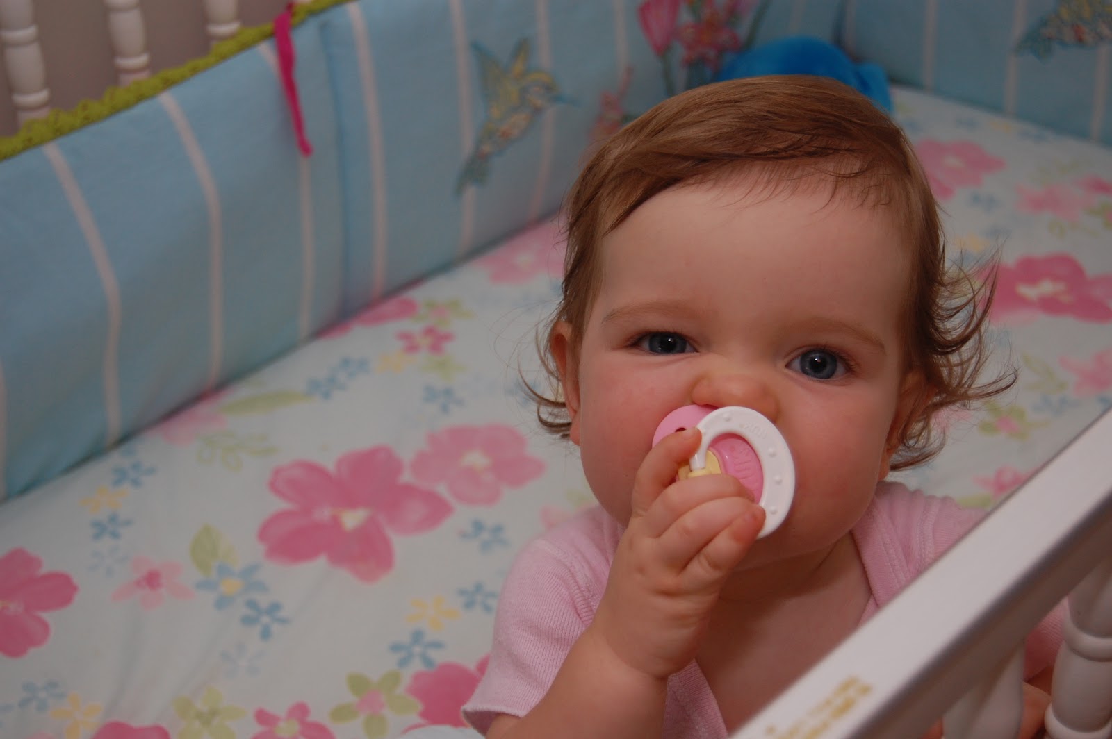 Like Vivi, Charlie has used a pacifier to sleep since birth. Interestingly, Charlie has never really bonded with a “lovey,” but we have kept a Winnie the Pooh and a blanket in her crib hoping one day she would attach to something. Instead, she prefers to be draped in pacifiers at nap and bed time, sucking on one and gripping another in each hand. Tricky.